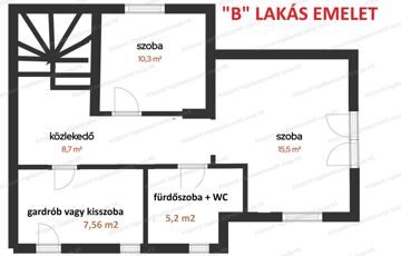 Az ikerház „B” lakása is eladó, ami 2 szintes, br. 110 m2-es.