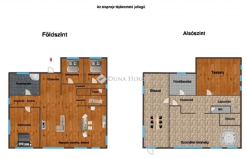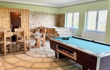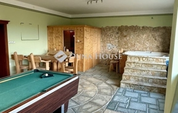 Külön említést érdemel az alsó szint, ahol rönkburkolattal díszített falak és rusztikus hangulat fogad. Tökéletes hely pihenésre, sportolásra, vagy akár egy hangulatos borozó / rekreációs tér kialakítására.