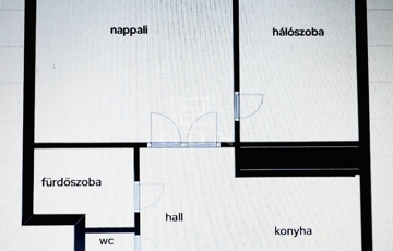 A lakásban a halból nyílik a kamra, fürdőkádas fürdőszoba, WC külön helyiségben, nappali. A hálóba a nappalin keresztül jutunk.