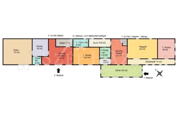 Két külön főbejárattal rendelkezik akár két külön lakásként is használható.
