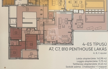 Az C/4-es típusú első emeleti  lakás 115,91 négyzetméteres, tartozik hozzá 2 loggia amelyek alapterülete 24,75 négyzetméter. A 115,91 négyzetméteren amerikai konyha, 3 hálószoba,  nappali, gardróbszoba, 2 fürdőszoba, valamint vendég WC is található. A loggián napozhat vagy akár egy jakuzzit is telepíthet.  Az ingatlanhoz mélygarázsok és tárolok is megvásárolhatóak.
