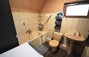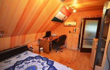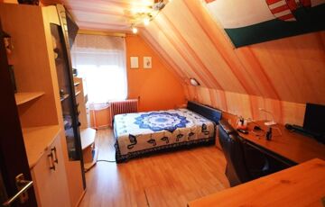 A Dunától 200 méterre, aszfaltozott utcában egy 1079 nm-es telken 1990-ben épült ez a tetőtér-beépítéses téglaház. Az épület lakható, de felújítandó állapotú! Idén egy szép, vadonatúj tető került rá, de a belső felújítás már az új tulajdonosra vár! A teljes ház alatt pince van, mely tartalmaz egy kb. 40 nm-es garázst, plusz kazánházat és műhelyt. A házhoz egy gondozott kert tartozik, melynek nagy részén gyümölcsös és szőlő található.
