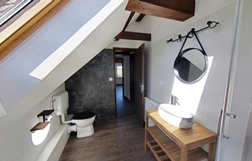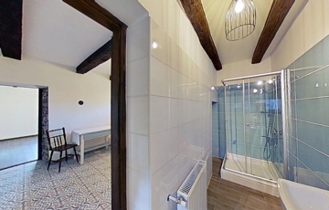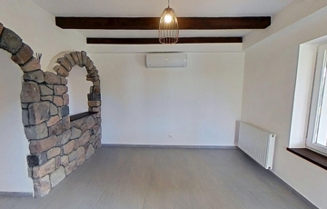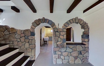 Fontos szempont volt a felújításnál az épület hagyományos stílusjegyeinek a megőrzése, így köszön vissza a múlt egy darabkája a rusztikus terméskő falazat és a pácolt nagyméretű fa gerendák formájában.