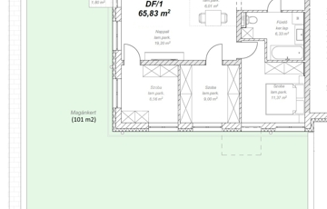 Mendén csodálatos zöld környezetben a Hétdomb lakóparkban, I. ütem második szakaszában megvalósuló új építésű zárt lakóparkban, A. kategóriás energiatakarékos ( hőszivattyús ) 16 lakásos társasházban, nettó hasznos 65,83 m² alapterületű, FÖLDSZINTI kertkapcsolatos lakást, SAJÁT 101 m² KERTRÉSSZEL kínálunk eladásra ( D épület Földszint 1. Lakás ).