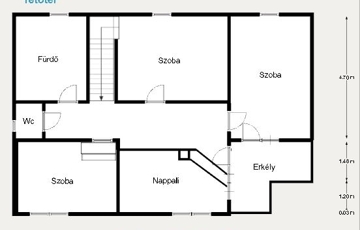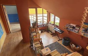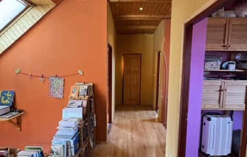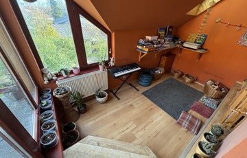- emeleten (bruttó: 75/nettó: 50nm): galériás nappali, három hálószoba, fürdő, külön wc ill. két szobából egy kertre néző erkélyre léphetünk ki.