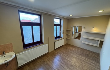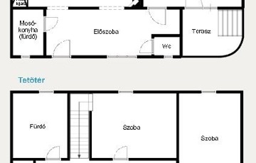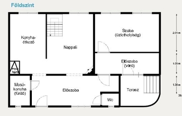 - alsó szinten (bruttó: 75nm): üzlethelyiség, nappali, konyha, mosókonyha, vendég wc található. Ill. a konyha alatt egy pince is kialakításra került.
