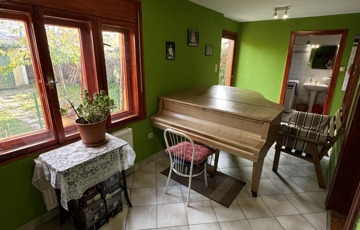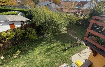 - kert kényelmes méretű, gyümölcsfák és dísznövények díszítik, lehetőséget ad házi kedvencek tartására is,