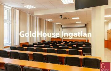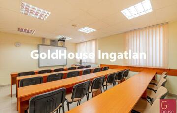 Földszint 848 nm: aula/recepció, 9 kisebb-nagyobb terem/iroda 8-56 fős+ 90 fős előadóterem, mosdók, büfé, teakonyhák, tornaterem zuhanyzós öltözőkkel.