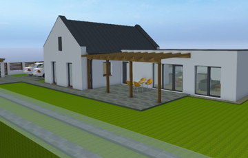 A hírdetésben megjelent külső látványtervek az engedélyezett ház tervei. Azaz a leendő végleges formát tükrözik.