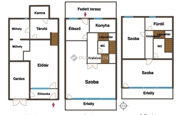 Szekszárd belvárosban, kórház szomszédságában eladó egy 3 szintes, 164nm-es, 3,5 szobás, átlagos állapotú sorház, garázzsal!Épület 1970-ben épület, lakható állapotú, de modernizálást, felújítást igényel, gázkonvektoros fűtéssel, 2db cserépkályhával rendelkezik.Ház elosztása:Földszint: garázs, előszoba, előtér, lépcsőtér, tároló, műhely, kamra elosztású. I. emelet: lépcsőtér, közlekedő, konyha, étkező, szoba hálórésszel, wc, erkély, fedett terasz kertkapcsolattal.II. emelet: lépcsőtér, közlekedő, Fürdő/wc, szoba, szoba, wc, erkély.Ingatlan belvárosi elhelyezkedése miatt sokféle funkciót betölthet, iroda, rendelő, üzlethelyiség. Megtekintéssel kapcsolatban keressen bizalommal!