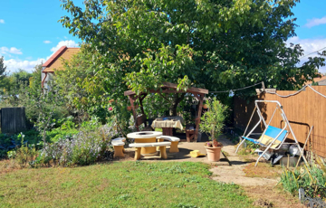 Az alsó szinten nagyméretű terasz, a felső emeleten pedig erkély nyújt kellemes pihenőhelyet. A nagy alapterületű pince akár két autó tárolására alkalmas garázst is magában foglal. A parkosított kertben filagória és bográcsozóhely szolgálja a kikapcsolódást és a közös családi programokat. A környék nyugodt, forgalommentes utcában fekszik, ugyanakkor a központ és a buszmegálló is mindössze 10 perc sétára elérhető.