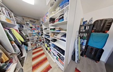A házhoz két autó kényelmes befogadására alkalmas fedett autóbeálló tartozik, a feljárón pedig tovább 2-3 autó elfér. Az autóbeálló része egy hasznos zárható tároló is. Rendelkezésre áll még egy 30 m2-es mobilgarázs is, melyet akár a kerti dolgok tárolására is használhat a leendő tulajdonos.