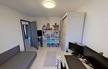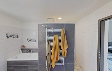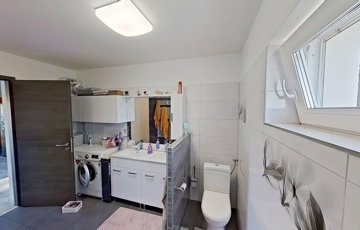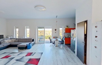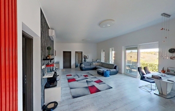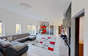 A ház elosztása nem is lehetne jobb, az egy szinten minden a hatalmas nappaliból nyílik. Innen nyílik 3 hálószoba - a szülői háló ráadásul nagy gardrób szobával is rendelkezik - fürdő, valamint innen lehet kimenni a páratlan panorámával bíró, 20 nm-es teraszra is.