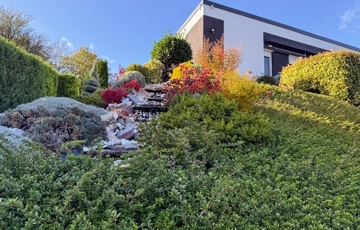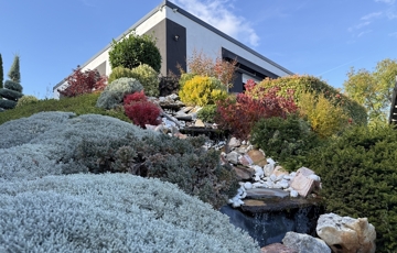 A kertet szakszerűen parkosították, mostanra gyönyörűen ki is alakultak a növények, érdemes a képeken elidőzni - ritka az ilyen szépen tervezett és karbantartott kert.