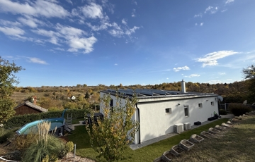 A ház fűtését télen egy takarékos pellet kazán biztosítja, enyhébb időben pedig akár a klímát is használhatjuk. Az ingatlan rendkívül energiatakarékos, és a további gazdaságosságot biztosítja a 7.5 kw-os napelemrendszer is.