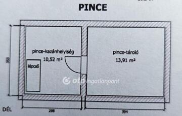 A kisebb lakás külön mérőórákkal, saját konyhával, fürdővel és egy szobával rendelkezik, alatta 25 m2 pince található.
