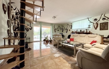 Erdő közeli családi ház KozármislenybenKozármisleny csendes részén, újfalu városrészben, 2007-ben épült, nagyon alacsony rezsi költséggel rendelkező, 237 m2-es, 2 generáció lakhatására is alkalmas családi ház, melléképülettel, garázssokkal eladó.Az 1548 m2-es telken elhelyezkedő családi ház 2 szintes és mind két szint külön bejárattal is rendelkezik illetve a szintek közötti belső átjárás is ki lett alakítva, amely igény szerint meg is szüntethető. A családi ház alsó szintjén hálószoba, konyha-étkező, nappali, 2 fürdőszoba és egy kazán helyiség található, míg az emeleti szinten 3 hálószoba, fürdőszoba, mellékhelyiség, tágas amerikai konyha-nappali, kamra és nagy méretű fedett terasz került kialakításra.Az ingatlan rezsi költsége rendkívül kedvező, köszönhetően az ingatlanon található 20-35 cm-es szigetelésnek, a napelem rendszernek, valamint a padlófűtéssel működő gáz-cirkó fűtésrendszernek, amely kiváltható a faelgázosító kazán működtetésével is.A nagy méretű, összközműves telken közel 100 m2-es melléképület található, mely az alábbi részekből áll: fedett autóbeálló, dupla személyautó garázs, nyári konyha mosdóval és egy nagy légterű, teherautó beállásra is alkalmas garázs.Az ingatlan kiváló választás lehet több generáció összeköltözése, valamint iroda és otthon együttes kialakítása esetén is.Bővebb információért várom hívását!