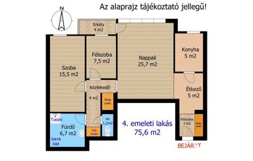 A jelen hirdetésben rögzített, az ingatlannal kapcsolatos adatok, információk az Eladó/Megbízó tájékoztatása alapján kerültek meghatározásra.