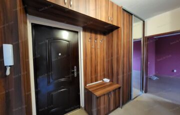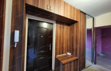 - Az előszobában egy nagy beépített szekrény (részben tolóajtós) van, sok pakolási lehetőséggel, cipőtárolóval és kabátakasztóval.