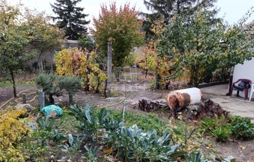 A házhoz tartozik egy 541 m²-es, gondozott kert, amely bőséges teret kínál pihenésre, kertészkedésre vagy akár családi programokra is.
