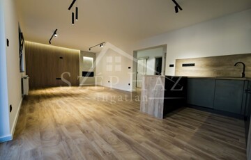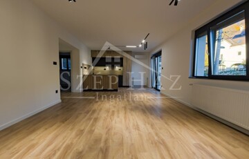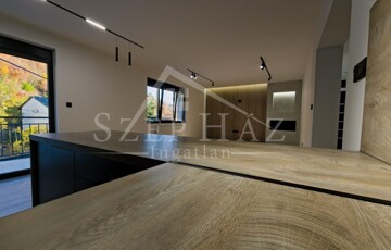 Az emeleti lakás tágas, világos terekkel, részleges panorámával és igényes anyaghasználattal kínál kényelmet.
