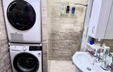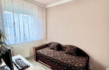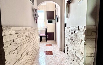 A lakás műanyag nyílászárókkal, redőnyökkel, biztonsági bejárati ajtóval felszerelt, felújított fürdőszobával és külön WC-vel várja új tulajdonosát. A konyhában beépített, gépesített konyhabútor található, amely – csakúgy, mint a többi helyiségben lévő beépített szekrények – a vételár részét képezi.