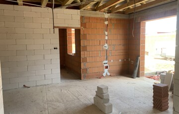 – Tégla főfalak, ytong válaszfalak, 15 cm homlokzati hőszigetelés