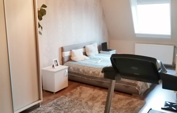 2 hálószoba, (laminált padlóval és járólappal burkolt), fürdő Wc külön helyiségben. Klímával, új beltéri ajtókkal felszerelt.