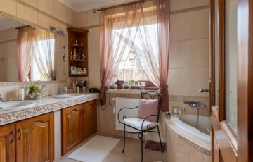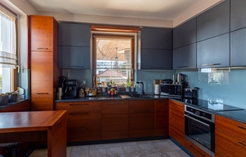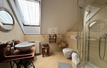 A hőszigetelt, 3 rétegű üvegezésű nyílászárók, a magas minőségű hideg- és melegburkolatok, a dizájnos falpanelek, valamint a tetőtéri tölgy lazúros lambériaburkolat a természetes eleganciát és tartósságot képviselik.