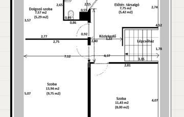 Itt két szoba, konyha, étkező, kamra, fürdőszoba, közlekedő és lépcsőház található.