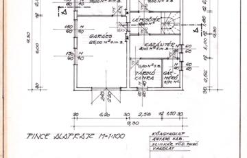 A pince szint 70,3 m², ahol fűtött, 25 m² garázs, hobby szoba, szárítóhelyiség, valamint kazánház, kamra- tároló, és gázmérő helység kapott helyet.