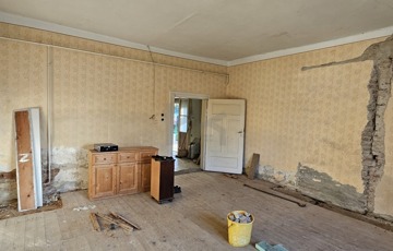A legnagyobb, 12.629 m²-es telken egy 122 m²-es, téglából épült családi ház található, amely teljes felújítást igényel. A tető cserépből készült, a víz és villany be van vezetve, gáz az udvarig elérhető.