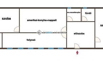 Elosztása: 2szoba+amerikai konyha-nappali.