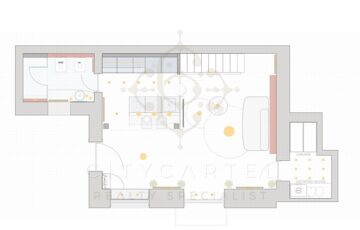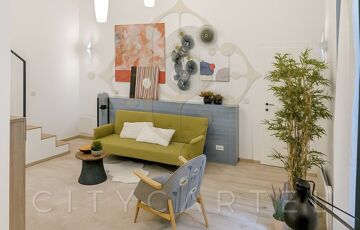 A 41 nm-es (plusz 8 nm galéria és 2 nm terasz) 1. emeleti lakás a belső udvarra néz, így rendkívül csendes, mégis néhány lépésre van a város lüktetésétől.