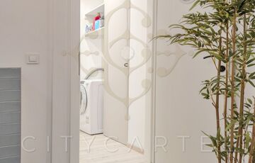 Háztartási helyiség gardróbbal, mosó- és szárítógéppel