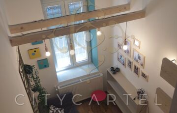 A tulajdoni lapon 71 nm-es lakás a nagy belmagasságnak köszönhetően galériákkal lett kiegészítve, így az alapterület minden négyzetmétere hasznosan kihasznált.