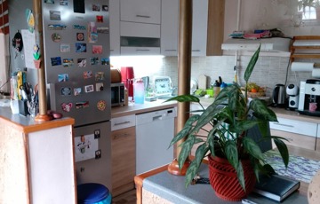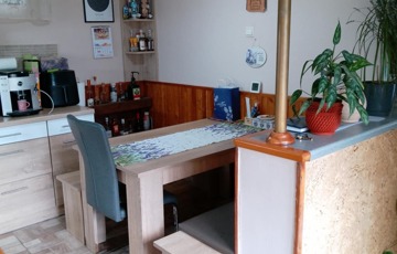 A hátsó lakrész ideális lehet albérlet kiadására, generációk együttélésére ,bármilyen tevékenységre, esetleg irodának. Ez a rész felújítandó, igény szerint ,de lakható is jelenleg tárolóként funkcionál. A lakrész elosztása: