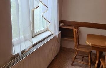 Az konyha – étkezőben 2 hatalmas ablakon keresztül tódul be a fény, a nyílászárók bár még a hagyományos fa ablakok, de minden helyiségben redőnnyel felszereltek.