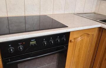 A konyha étkező bútorzata tölgyfából készült, a hűtőt a sütőt és a villany tűzhelyet is magában foglalja.