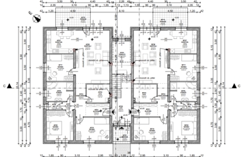 A lakást zárt lépcsőházból érjük el, a földszinten két lakás, az emeleten két iroda kerül kialakításra.