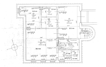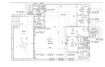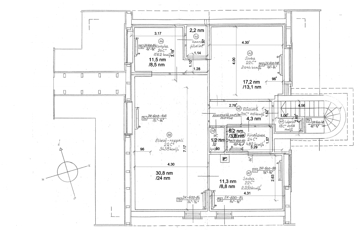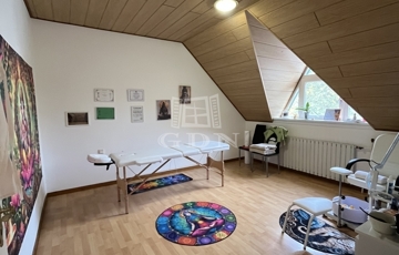 A földszinten melynek hasznos alapterülete: 106,6 nm + 40 nm terasz, és a pinceszinten 103,2 nm működik az ételbár, a tetőtérben egy nettó 66 nm alapterületű lakás van kialakítva.