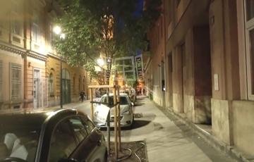Az utca ezen szakasza nemrég díszburkolatot és frissen ültetett fákat kapott.