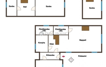 Nappali + 4 hálószoba, 2 fürdőszoba, konyha, előszoba
