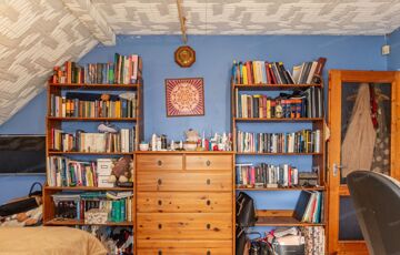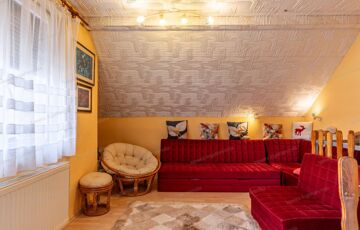 A dolgozószobából vezet a lépcső az emeletre, ahol második nappali, két hálószoba, valamint egy tágas, sarokkádas fürdőszoba található. A nappaliból és az egyik hálóból is közvetlen kijárat nyílik az erkélyre.