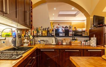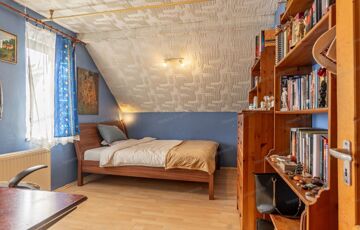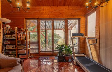 A ház elrendezése kimagaslóan praktikus, akár két generáció számára is kényelmes, jól elkülöníthető életteret biztosít. A földszinten amerikai konyhás nappali található, amelyet egy impozáns kandalló tesz igazán hangulatossá. Innen nyílik a teljesen zárt télikert, ahol a szauna kapott helyet, valamint a teraszra is innen jutunk ki. Ezen a szinten egy nagyméretű dolgozószoba, egy frissen felújított fürdőszoba WC-vel, közlekedő, mosókonyha és kamra is rendelkezésre áll.