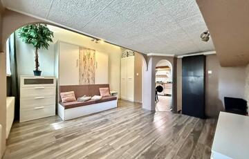 A felújítás során minden megújult – vezetékek, burkolatok, nyílászárók –, több válaszfal elbontásával pedig egy sokkal tágasabb tér alakult ki. A lakás külön kamrával, külön WC-vel és egy ízlésesen kialakított zuhanyzós fürdőszobával rendelkezik. A közös költség részét képezi a fűtés is.