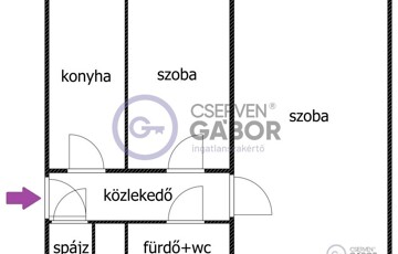 A 42 m2-es lakótér magába foglal egy tágas nagyszobát, egy nagyjából 6 m2-es félszobát, normálméretű konyhát, spájzot, és egy fürdőt, ami magába foglalja a WC-t is.