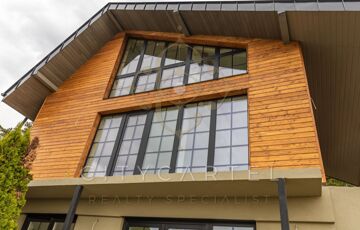 - Az épületek harmonikusan illeszkednek a természeti környezetbe, a kertben cserjékkel, zöld növényzettel való vizuális átmenet kerül kialakításra