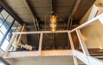 - Az emeleten egy napfényes, panorámás közösségi tér kapott helyet, erkélykapcsolattal, ahonnan egy lépcsőn keresztül közelíthető meg a galéria, amely igény esetén zárt szobává is alakítható.