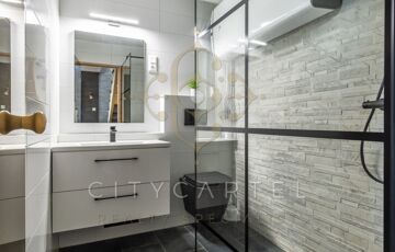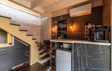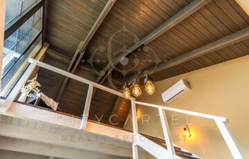 - A felső szinten egy kádas fürdőszoba, valamint egy galériás, jelenleg nyitott, de igény esetén könnyedén zárttá alakítható 34 nm-es szoba kapott helyet.